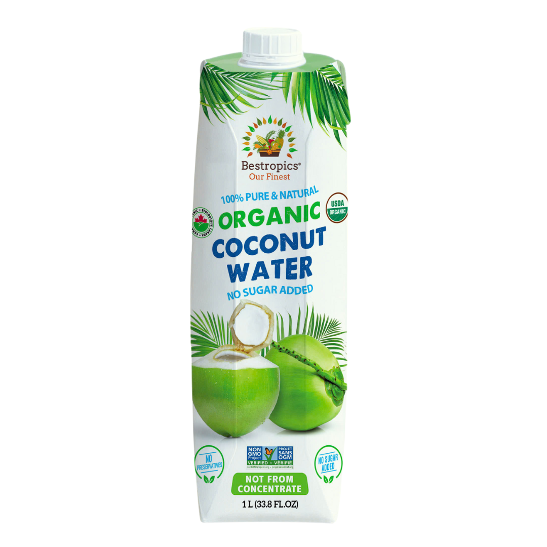 Introducing “Bestropics” Organic Coconut water, cultivated through eco-conscious farming practices prioritizing biodiversity and sustainability. Free from synthetic fertilizers, pesticides, and GMOs, this natural elixir is a powerhouse of essential nutrients, bolstering heart health, weight management, immunity, and cognitive function.
