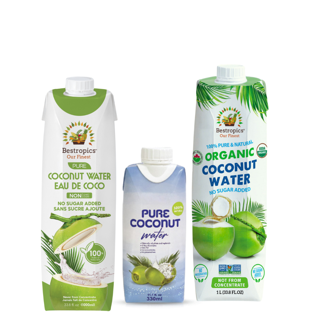 Indulge in the purest tropical delight with our “Bestropics” premium coconut water, available in both conventional and organic.